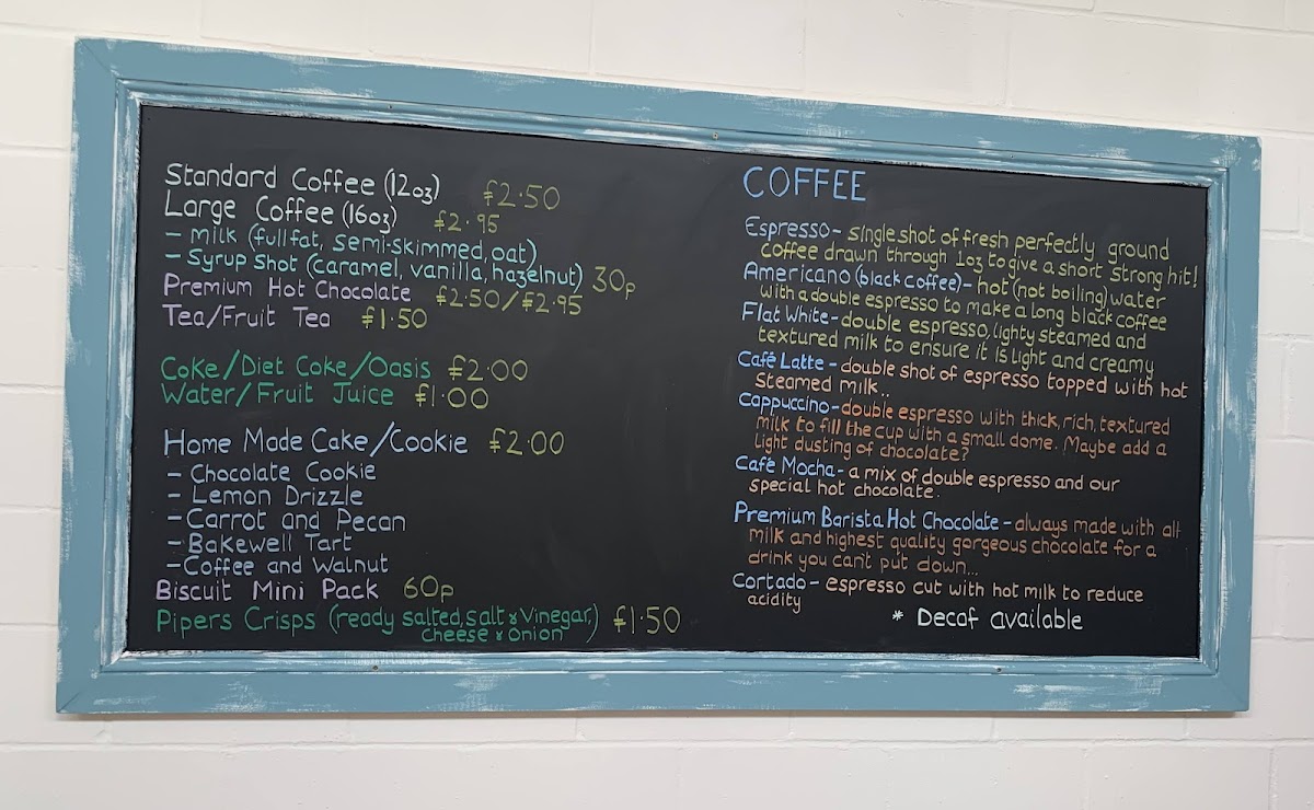 Breakfast selections include fresh pastries starting from £1.50, bacon sandwiches or baps, and toast options. These items provide convenient morning choices for those looking for a quick start.